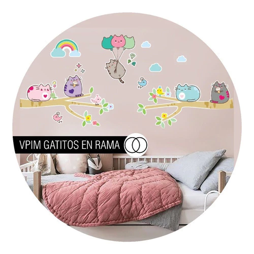 VINILOS DECORATIVOS INFANTILES FULL COLOR GATITOS EN RAMA DE AVALON VINILOS: Este Vinilo no tiene fondo. Son solamente las figuras a todo color que ves en la foto y podés distribuirlas como más te guste!