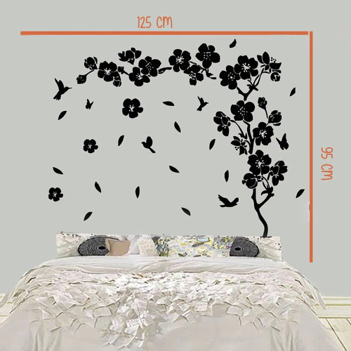 Vinilo Decorativo Marco Respaldo Cama Flores Hojas Pajaros