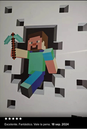 SOMOS AVALON VINILOS. VINILO AUTOADHESIVO IMITANDO 3D STEVE DE MINECRAFT ROMPIENDO LA PARED