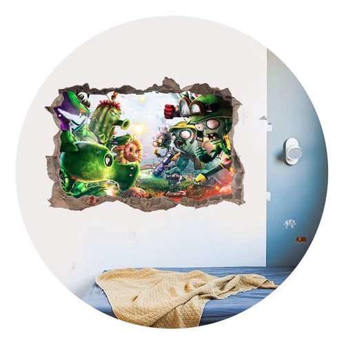 Vinilos Infantiles Pared Rota 3d Plantas Vs Zombies